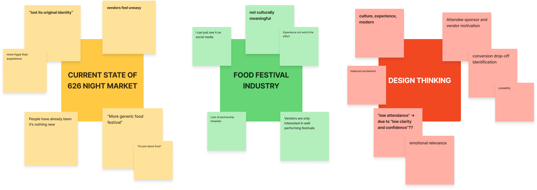 Attendees are cultural explorers who respond well to food, entertainment, and event discovery highlights. Sponsors need earlier seasonal engagement opportunities and clearer metrics. Vendors seek exposure and customers.